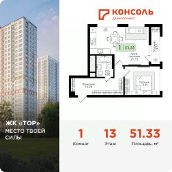 Продается однокомнатная квартира 112 без отделки в ЖК ''ТОР'' площадью 51.33 на 13 этаже от застройщика Консоль девелопмент.Жилому комплексу ТОР присвоен повышенный уровень комфортности — комфорт плюс. Он подразумевает светлые просторные квартиры с большими окнами и удобной планировкой, оригинальные парадные и общественные пространства.