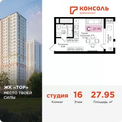 Продается квартира-студия 143 с чистовой отделкой в ЖК ''ТОР'' площадью 27.95 на 16 этаже от застройщика Консоль девелопмент.Жилому комплексу ТОР присвоен повышенный уровень комфортности — комфорт плюс. Он подразумевает светлые просторные квартиры с большими окнами и удобной планировкой, оригинальные парадные и общественные пространства.