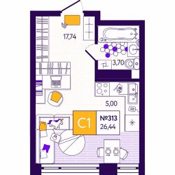 Продаётся 1-комнатная квартира в строящемся доме (Позиция 2), срок сдачи: III-кв. 2029, общей площадью 41.55 кв.м., на 18 этаже. Новый жилой комплекс в г. Тула ''Платон Парк'' от застройщика ООО ''СЗ ''МОНОЛИТ''''
