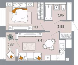 Продаётся 1-комнатная квартира в строящемся доме (Дом 20), срок сдачи: I-кв. 2026, общей площадью 42.4 кв.м., на 2 этаже. Расположение, транспортная доступность Новый жилой комплекс ''Юго-Восточный'' строится в Туле, в 3,5 км от центра города. Благодаря удачным транспортным развязкам, автолюбители смогут доехать до центральных кварталов примерно за 5 10 минут, составив наиболее быстрый и удобный маршрут с учетом загруженности дорог. Проблем с мобильностью не возникнет и у пассажиров общественного транспорта. Рядом с домом расположены остановки автобусов и маршрутных такси, которые быстро довезут до любого района города. Так, чтобы добраться до центра, следует дойти пешком до остановки ''Медтехника'', где останавливается маршрутное такси, доезжающее до центральных кварталов всего за 7 8 минут. Инфраструктура Район, где возводится новый жилой комплекс, активно застраивается, и сеть инфраструктуры сов временем будет расширяться. Но и сейчас все, что нужно для комфортной жизни в городе, находится недалеко от жилого комплекса. В шаговой доступности расположены продуктовые магазины: ''Виктория'', ''Овощи-фрукты'', Магазин рыбы и мяса птицы, магазин мяса и колбас ''У Максима'', супермаркеты ''Дикси'', ''Пятерочка'', ''SPAR''. Неподалеку находится гипермаркет ''Линия'', крупный торговый центр, в котором расположены отделения банков, гипермаркет ''Глобус'', салон оптики, мебельный магазин ''Столплит'', зоомагазин ''Четыре лапы'' и пр. В соседнем здании находится строительный гипермаркет ''Леруа Мерлен'', за ним крупный магазин товаров для спорта, туризма и активного отдыха ''Декатлон''.Недалеко от жилого комплекса открыты кафе и рестораны: кофейня ''Bonape'', пиццерия ''Культура'', кафе ''Вкуснов'', кафе быстрого обслуживания ''Rapido'', ресторан ''У фонтана'' и пр.В районе есть аптеки, поликлиники, диагностические центры. В шаговой доступности от жилого комплекса расположено несколько детских садиков, в том числе, садик комбинированного вида ''Алые паруса''. Есть дошкольные отделения, входящие в состав образовательных центров, Центры развития ребенка. Поблизости расположены средние школы, в том числе, школа для детей с ОВЗ. Рядом с жилым комплексом находится Тульская Духовная Семинария и Суворовское училище. Надежность застройщик: достраивает объект ООО Ин-Групп.АрхитектураЖилой комплекс будет представлен 19 монолитно-кирпичными корпусами переменной этажности, выполненными в едином архитектурном стиле. При строительстве ЖК ''Юго-Восточный'' применяются современные материалы высокого качества, которые обеспечивают надежность домов и комфортный микроклимат в помещениях. Каждая секция оснащается современными лифтами. Помещения общего пользования отделываются экологичными материалами. Квартиры предлагаются однокомнатные (от 43,9 кв. м), двухкомнатные (от 45,8 кв. м), трехкомнатные (от 60,4 кв. м) и четырехкомнатные (от 87,2 кв. м), а также уютные студии (от 28,9 кв. м).На внутренней территории проводится комплексное благоустройство: озеленение, организация игровых площадок, мест для отдыха и заня