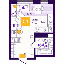 Продаётся 1-комнатная квартира в строящемся доме (Дом 7), срок сдачи: IV-кв. 2026, общей площадью 23.09 кв.м., на 5 этаже. Жилой комплекс ''5 Баллов'' от застройщика ''СЗ Квартал'' в поселке молодежный Тульской области.
