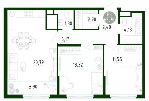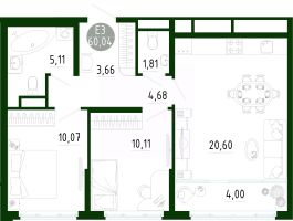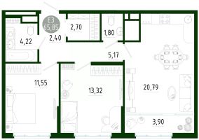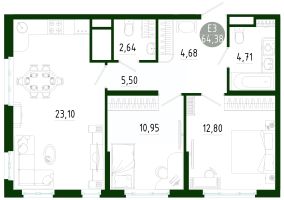 Продаётся 2-комнатная квартира в строящемся доме (Позиция 2), срок сдачи: III-кв. 2029, общей площадью 64.37 кв.м., на 15 этаже. Новый жилой комплекс в г. Тула ''Платон Парк'' от застройщика ООО ''СЗ ''МОНОЛИТ''''