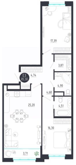 Продаётся 2-комнатная квартира в строящемся доме (Корпус 1), срок сдачи: IV-кв. 2028, общей площадью 67.36 кв.м., на 6 этаже. Новый жилой комплекс ''LANGERHALL'' от застройщика ''ЦСМ'' расположен по адресу: г. Тула, Оборонная улица