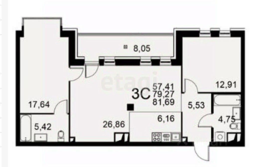 42 м² · Этаж 17 из 27