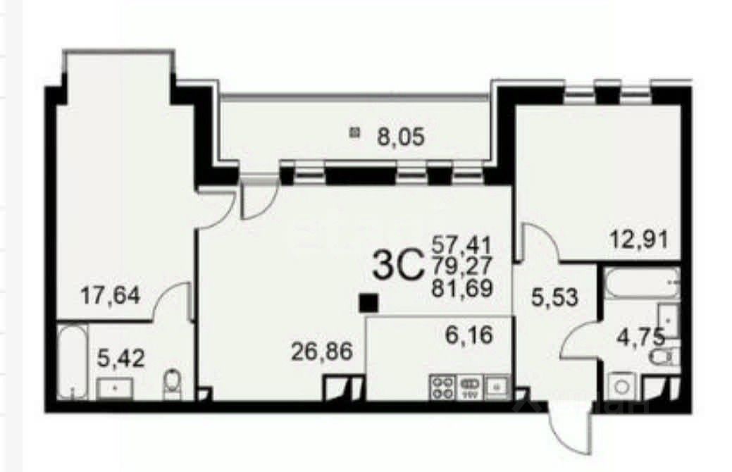 76 м² · Этаж 13 из 25