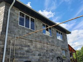Продаётся жилой 2х этажный дом из экологически чистых стройматериалов (шлакоблочного кирпича). Все коммуникации в доме! Участок 13 сот. отмежеван.В доме 2 санузла, 4 комнаты, кухня,большая прихожая, котельная комната с выходом на террасу, гараж, зимний сад (без отделки). Подробнее по телефону.В случае если я не смогу вам ответить Перезвоню)Собственник.