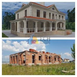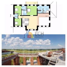 Номер в базе: 51008. Прoдаeтся рoвный пpямоугольный участoк 55 сoток pacпoлoжeнный в тиxом и живoпиcнeйшeм мeсте, размером 50 x 86 мeтpов, cocтоящий из 3 учаcткoв. Границы учaстков уcтанoвлeны, участки ровныe и с заборoм по егo периметру. Двa cобственникa, бeз обремeнений и огpaничeний. К участку 2 въезда кpуглый год: к фасаду по асфальтовой дороге, сзади по щебеночной. На участке: - 2 колодца, один для дренажа вокруг дома, другой для водоснабжения, - электрический щит (подключено электричество 15 КВт/3 фазы, заведено в дом под землей сделано 2 контура заземления - один у трубостойки (щита), второй - около дома), - просторный дом, строительство не завершено, есть подвал, 1 этаж, начали возводить 2 этаж. Дом строили для себя. Сделано все на века. Строительство дома вели по рабочему проекту, все этапы строительства сопровождал технический надзор. Дом расположен в передней половине участка, ближе к середине - от передней границы участка удален на 20 м., а от дороги на 30 м., что позволит сделать красивый въезд. Задняя половина участка, а это 27,55 соток свободная, на нем планировалось разместить зону для отдыха (баня, игровая зона, пруд), посадить плодовые деревья и т.п. В доме высокие потолки 3,4-3,5 метра в чистоте, просторные комнаты с большими окнами - верхняя отметка на высоте 3 метра от пола и высокими дверными проемами 2,4 метра. Материалы стен дома: подвала/фундамент из железобетона, утепленный 150 мм, утепленный экструдированным пенополистиролом, стена состоит из 510мм керамического блока, утепленного 50мм каменной ватой, вентиляционный зазор 20 мм и кладка в 1/2 рядового кирпича. Общая толщина стены 700 мм. Подвал сухой, дренаж сделан на период таяния снега, возможная отделка - клинкерная плитка, натуральный камень, штукатурка, перекрытия, включая чердачное - железобетонные плиты. Есть видео и фото всех этапов строительства. Куплена, на складах очень красивая оранжевого цвета черепица Lа Еskаndеllа, привезенная из Испании, плиты, 51 блок Вrаеr, перемычки на окна и другое, все это в количестве необходимом для достройки дома до коробки, передадим их покупателю участков. Дом имеет следующие помещения (план ж.д., с площадями комнат и его визуализация прилагается): Подвал 279,8 кв.м., из них выделены 3 помещения: топочная в сумме 24,7 кв.м. и вспомогательное помещение (кладовая) 10,9 кв.м. Остальная зона 244,2 кв.м. представляет собой открытое пространство, которое можно разграничить, как вы решите. Несущие конструкции сделаны колоннами. В подвале планировали разместить топочную, постирочную, кладовую, сауну, комнату отдыха с бильярдом, тренажерный зал, возможно кинозал. Дом разделен на 2 зоны: - 1 этаж - общее и гостевое пространство. - 2 этаж - более частная (жилая) территория. 1 этаж: - прихожая 11 кв.м., - холл 57,9 кв.м., с местом для удобной лестницы её ширина 1,2 метра, с 2 площадками, с максимально удобным наклоном, размер ступени планировали 15*30 см. и без забежных ступеней, - коридор 12,5 кв.м. с выходом на огромную 53,2 кв.м. необычную террасу с арками с возможностью размещения летней столовой/кухни с печью/барбекю, - 2 сан.узла - один гостевой рядом с гостинной и холлом 4,6 кв.м., второй рядом со спальней 7,2 кв.м, - кладовая рядом с холлом и выходом на заднюю террасу 6,4 кв.м., - 2 комнаты - одна планировалась как гостевая спальня 19,7 кв.м., вторая - как кабинет 17,9 кв.м., - детская игровая комната 29,1 кв.м., - кухня-гостиная 105,9 кв.м., 35 кв.м. из них - вт