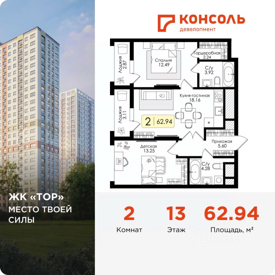 Продается двухкомнатная квартира 118 без отделки в ЖК ''ТОР'' площадью 62.94 на 13 этаже от застройщика Консоль девелопмент. Жилому комплексу ТОР присвоен повышенный уровень комфортности — комфорт плюс. Он подразумевает светлые просторные квартиры с большими окнами и удобной планировкой, оригинальные парадные и общественные пространства.