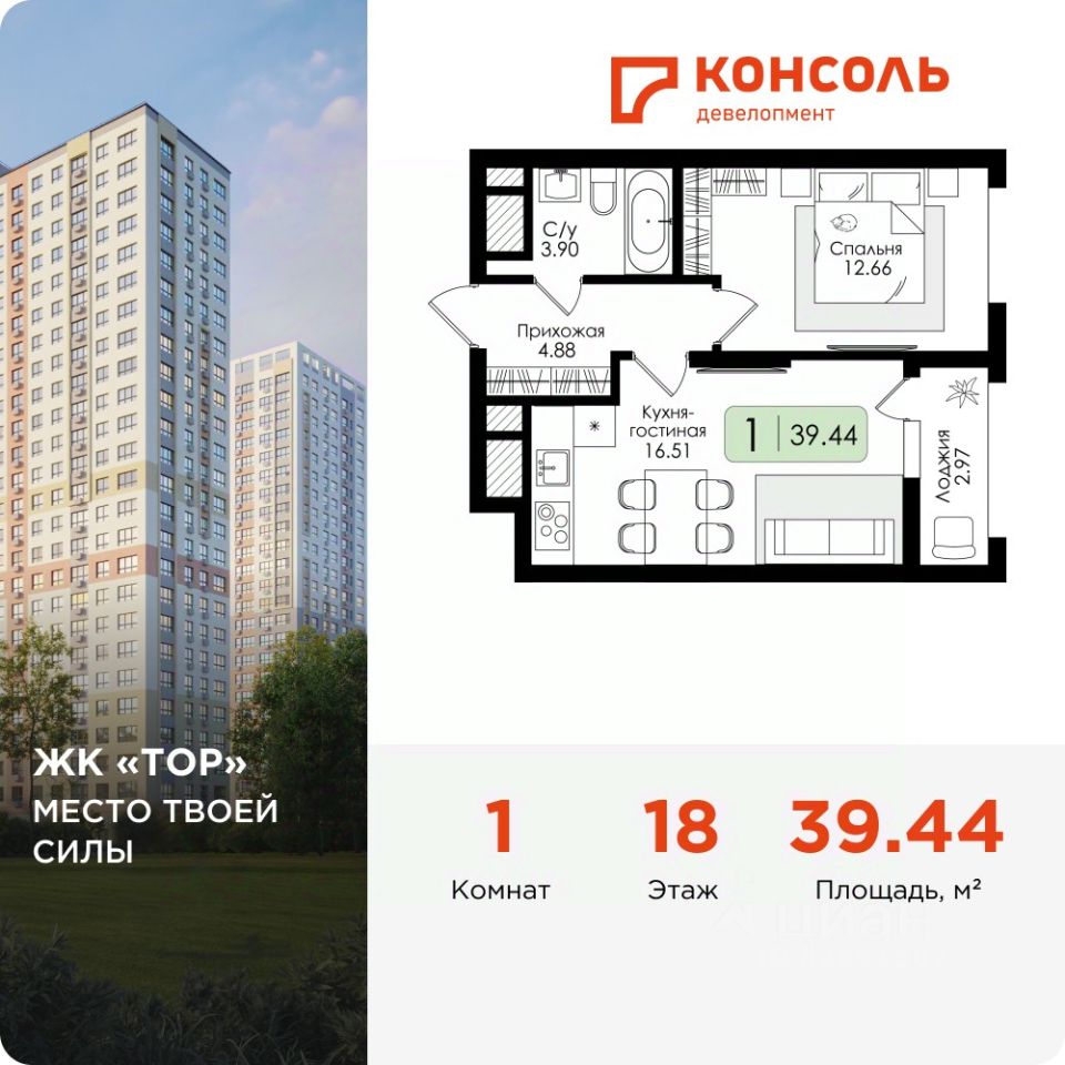 Продается однокомнатная квартира 94 без отделки в ЖК ''ТОР'' площадью 39.44 на 11 этаже от застройщика Консоль девелопмент. Жилому комплексу ТОР присвоен повышенный уровень комфортности — комфорт плюс. Он подразумевает светлые просторные квартиры с большими окнами и удобной планировкой, оригинальные парадные и общественные пространства.