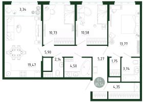 Продаётся 3-комнатная квартира в строящемся доме (Позиция 1), срок сдачи: III-кв. 2029, общей площадью 85.59 кв.м., на 25 этаже. Новый жилой комплекс в г. Тула ''Платон Парк'' от застройщика ООО ''СЗ ''МОНОЛИТ''''
