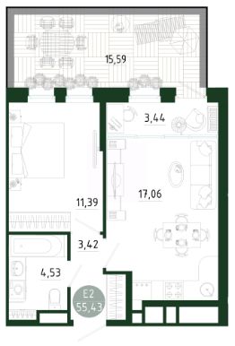 Продаётся 2-комнатная квартира в строящемся доме (Позиция 2), срок сдачи: III-кв. 2029, общей площадью 55.43 кв.м., на 1 этаже. Новый жилой комплекс в г. Тула ''Платон Парк'' от застройщика ООО ''СЗ ''МОНОЛИТ''''
