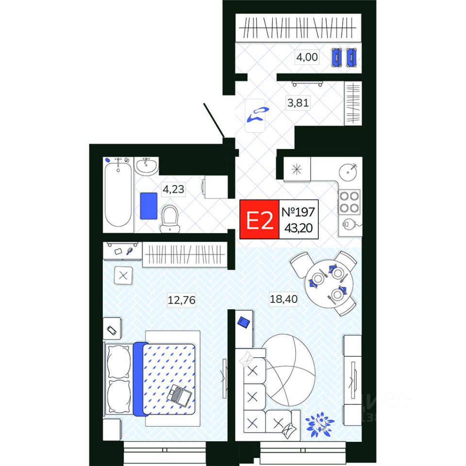 43 м² · Этаж 18 из 19