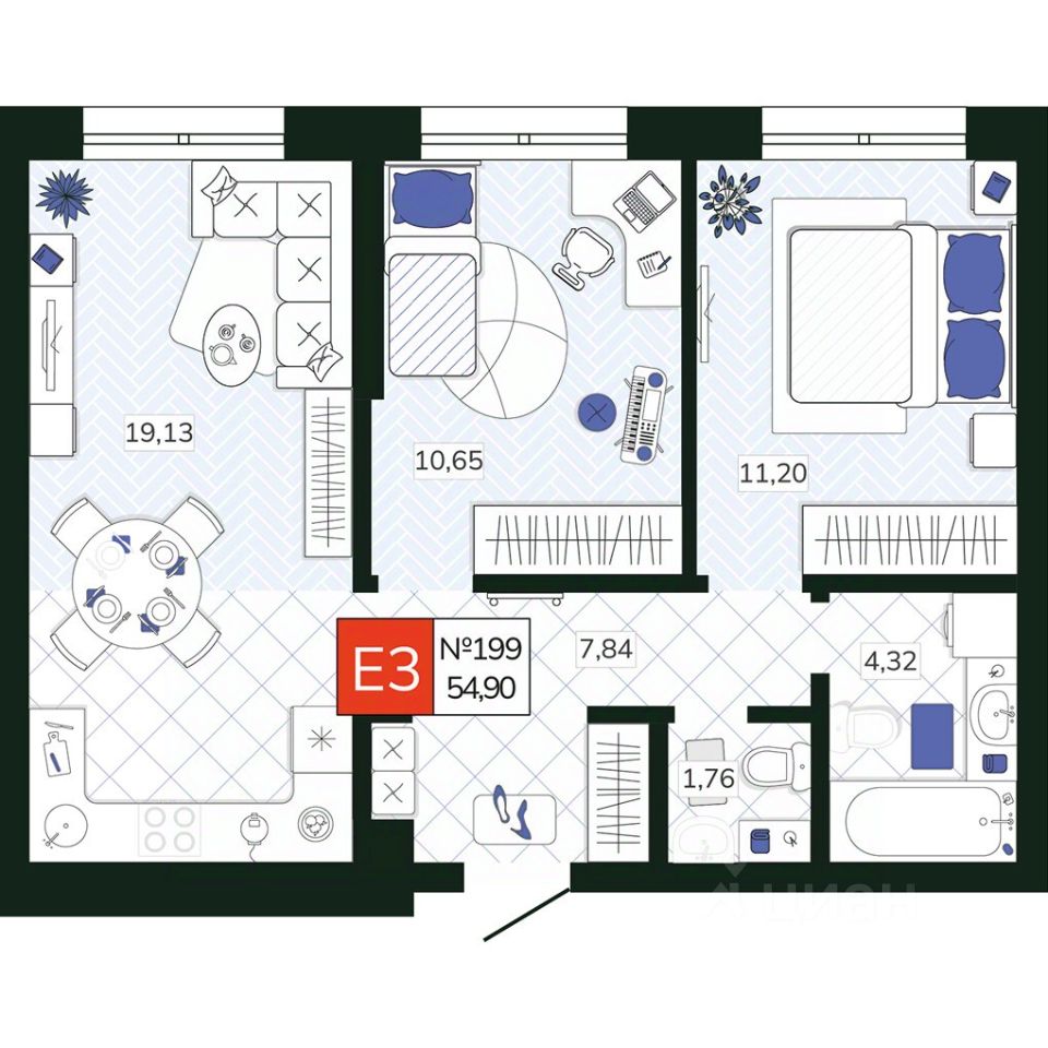 55 м² · Этаж 10 из 19