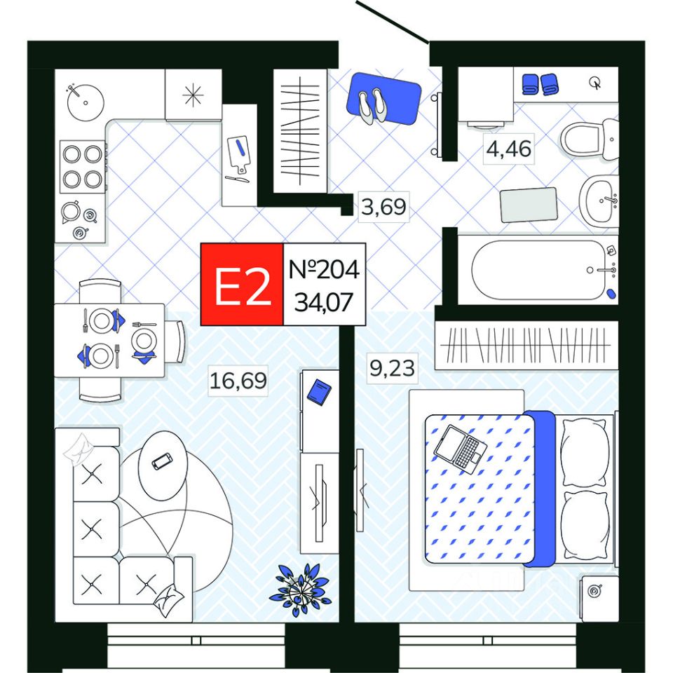 34 м² · Этаж 16 из 19