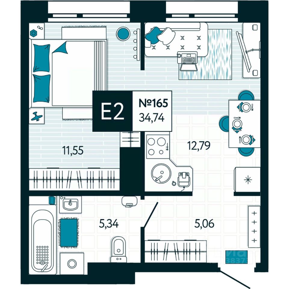 34 м² · Этаж 13 из 15