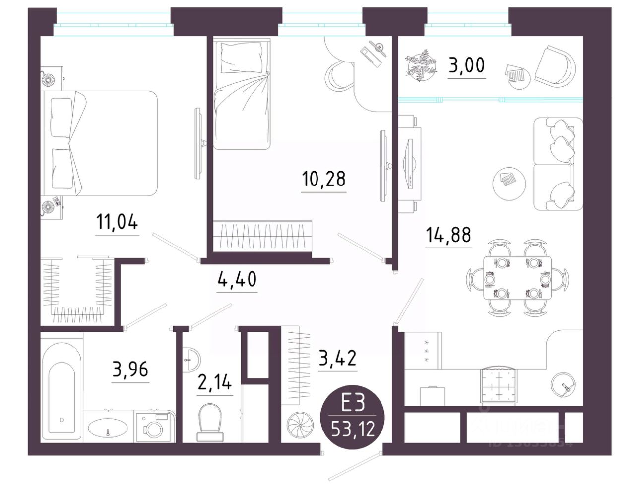 53 м² · Этаж 3 из 10