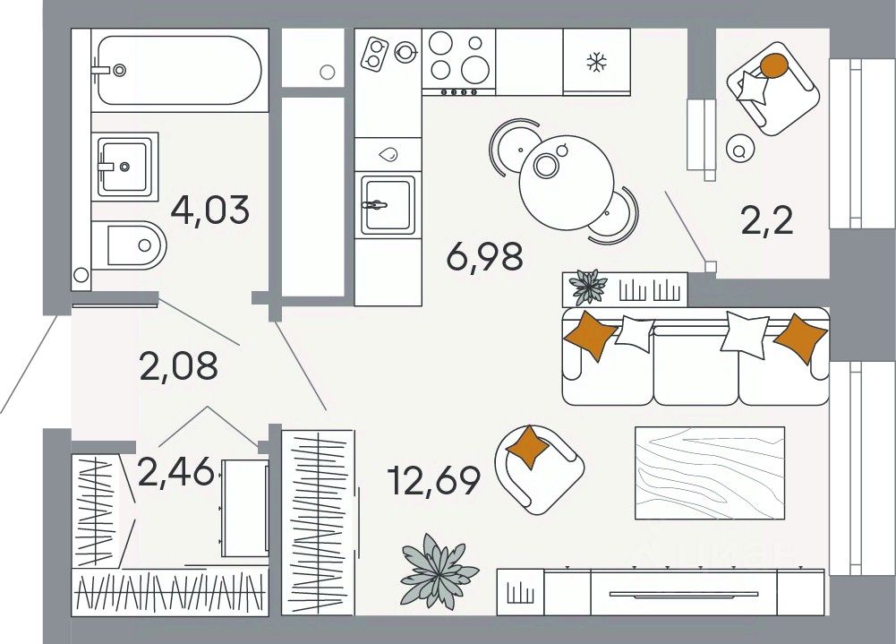 69 м² · Этаж 16 из 25