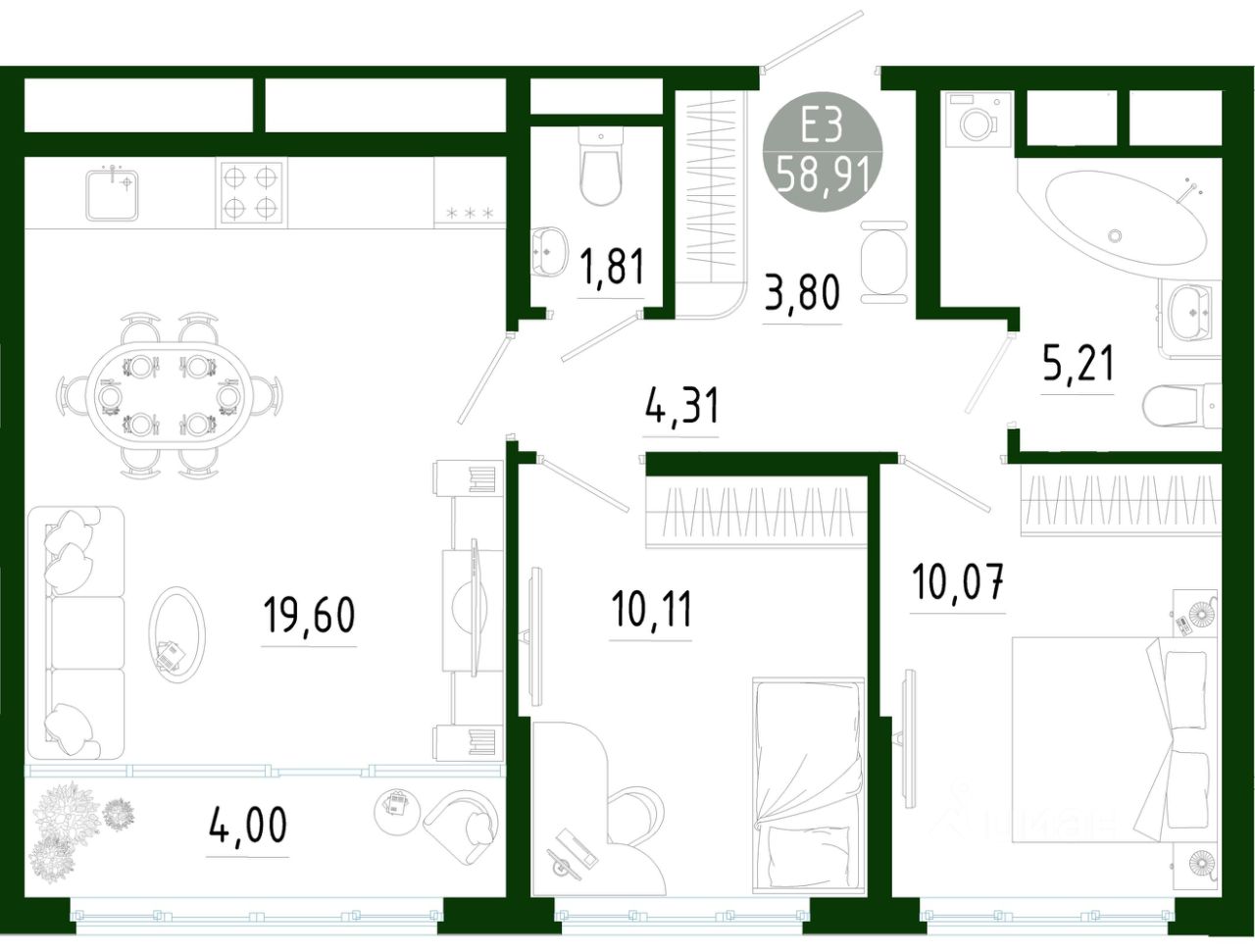 60 м² · Этаж 7 из 25