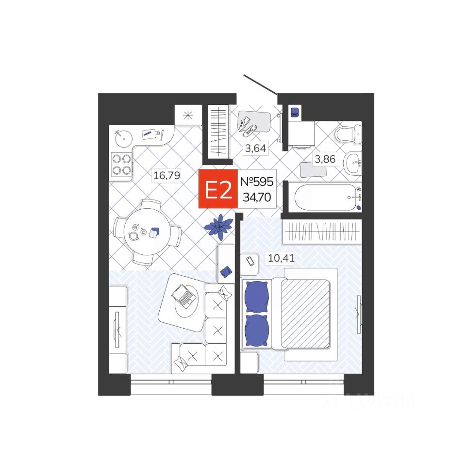 34 м² · Этаж 16 из 19