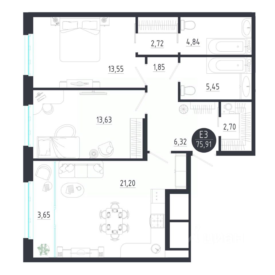 75 м² · Этаж 2 из 8