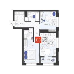 Продаётся 3-комнатная квартира в строящемся доме (Позиция 2), срок сдачи: III-кв. 2029, общей площадью 85.59 кв.м., на 10 этаже. Новый жилой комплекс в г. Тула ''Платон Парк'' от застройщика ООО ''СЗ ''МОНОЛИТ''''