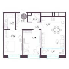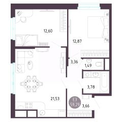 Продаётся 2-комнатная квартира в строящемся доме (Дом 20), срок сдачи: I-кв. 2026, общей площадью 54.5 кв.м., на 14 этаже. Расположение, транспортная доступность Новый жилой комплекс ''Юго-Восточный'' строится в Туле, в 3,5 км от центра города. Благодаря удачным транспортным развязкам, автолюбители смогут доехать до центральных кварталов примерно за 5 10 минут, составив наиболее быстрый и удобный маршрут с учетом загруженности дорог. Проблем с мобильностью не возникнет и у пассажиров общественного транспорта. Рядом с домом расположены остановки автобусов и маршрутных такси, которые быстро довезут до любого района города. Так, чтобы добраться до центра, следует дойти пешком до остановки ''Медтехника'', где останавливается маршрутное такси, доезжающее до центральных кварталов всего за 7 8 минут. Инфраструктура Район, где возводится новый жилой комплекс, активно застраивается, и сеть инфраструктуры сов временем будет расширяться. Но и сейчас все, что нужно для комфортной жизни в городе, находится недалеко от жилого комплекса. В шаговой доступности расположены продуктовые магазины: ''Виктория'', ''Овощи-фрукты'', Магазин рыбы и мяса птицы, магазин мяса и колбас ''У Максима'', супермаркеты ''Дикси'', ''Пятерочка'', ''SPAR''. Неподалеку находится гипермаркет ''Линия'', крупный торговый центр, в котором расположены отделения банков, гипермаркет ''Глобус'', салон оптики, мебельный магазин ''Столплит'', зоомагазин ''Четыре лапы'' и пр. В соседнем здании находится строительный гипермаркет ''Леруа Мерлен'', за ним крупный магазин товаров для спорта, туризма и активного отдыха ''Декатлон''.Недалеко от жилого комплекса открыты кафе и рестораны: кофейня ''Bonape'', пиццерия ''Культура'', кафе ''Вкуснов'', кафе быстрого обслуживания ''Rapido'', ресторан ''У фонтана'' и пр.В районе есть аптеки, поликлиники, диагностические центры. В шаговой доступности от жилого комплекса расположено несколько детских садиков, в том числе, садик комбинированного вида ''Алые паруса''. Есть дошкольные отделения, входящие в состав образовательных центров, Центры развития ребенка. Поблизости расположены средние школы, в том числе, школа для детей с ОВЗ. Рядом с жилым комплексом находится Тульская Духовная Семинария и Суворовское училище. Надежность застройщик: достраивает объект ООО Ин-Групп.АрхитектураЖилой комплекс будет представлен 19 монолитно-кирпичными корпусами переменной этажности, выполненными в едином архитектурном стиле. При строительстве ЖК ''Юго-Восточный'' применяются современные материалы высокого качества, которые обеспечивают надежность домов и комфортный микроклимат в помещениях. Каждая секция оснащается современными лифтами. Помещения общего пользования отделываются экологичными материалами. Квартиры предлагаются однокомнатные (от 43,9 кв. м), двухкомнатные (от 45,8 кв. м), трехкомнатные (от 60,4 кв. м) и четырехкомнатные (от 87,2 кв. м), а также уютные студии (от 28,9 кв. м).На внутренней территории проводится комплексное благоустройство: озеленение, организация игровых площадок, мест для отдыха и зан