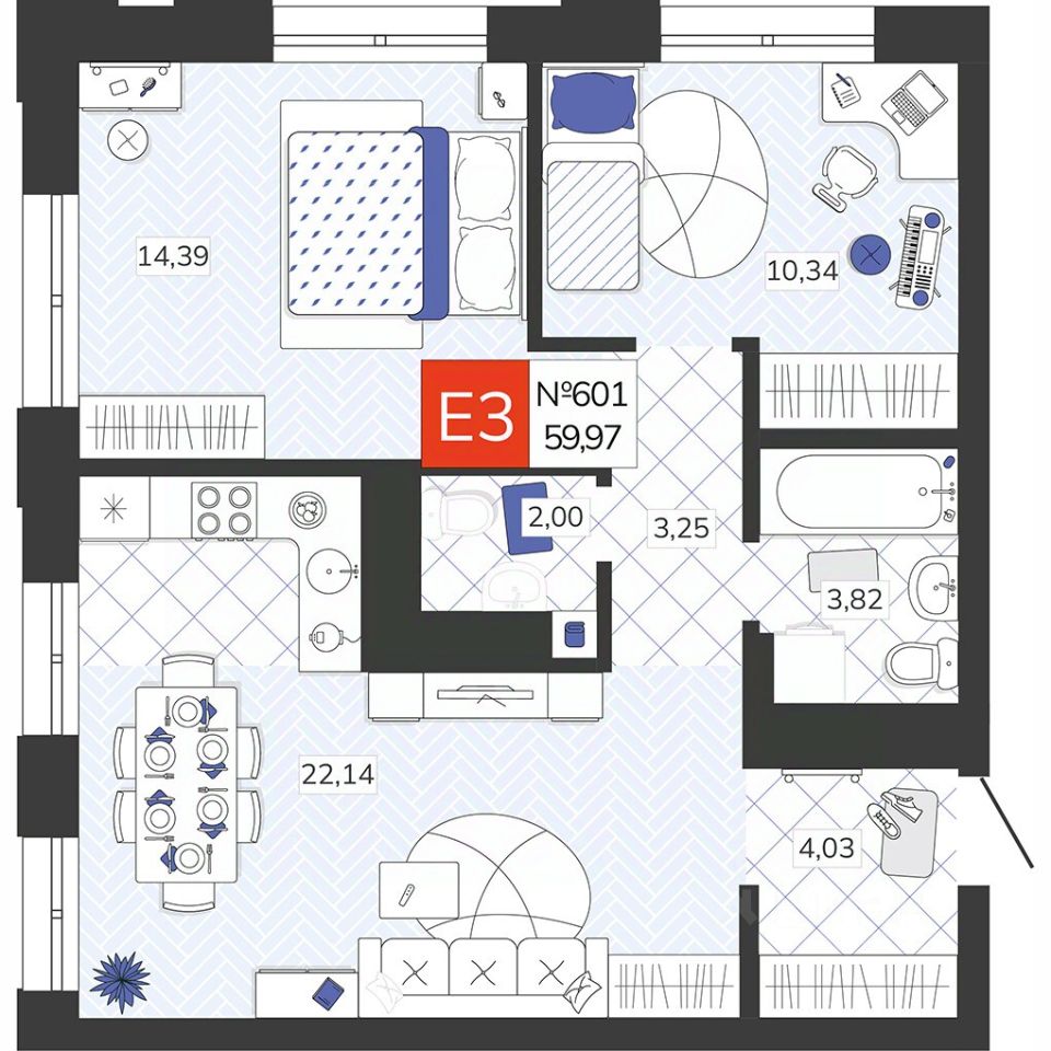 59 м² · Этаж 16 из 19