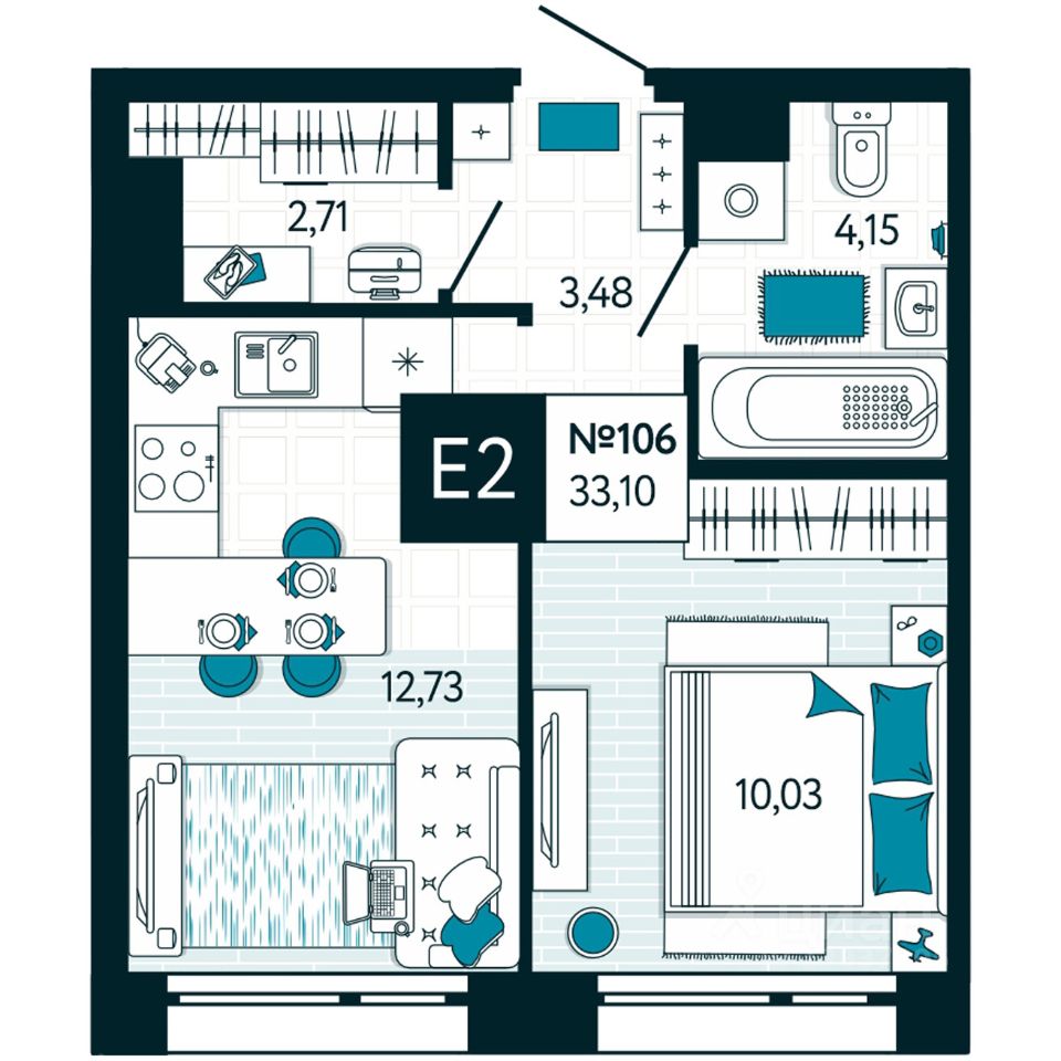 34 м² · Этаж 6 из 15