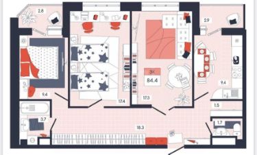 44 м2