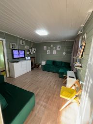 Продается крепкий, красивый, современный дом общей площадью 107м2, подходящий для круглогодичного проживания. Располагается на 10 сотках в коттеджном поселке Заречье Виладж Заокского района Тульской области. Все коммуникации продуманы, подготовлены для Вас, функционируют и уже подключены: вода из скважины поселка, фильтрованная, септик перерабатывающий биостанция Евролос-5, который не нуждается в обслуживании, электричество 15 кВт, 3 фазы. Газ по границе участка. В доме сделан качественный ремонт, оборудованы и укомплектованы два сан узла (один с ванной, другой с душевой кабиной). Тут просторно разместится большая семья! Так как есть три изолированные спальни (одна из которых мастер-спальня со своей ванной комнатой), огромная кухня-гостиная 48м2 с красивейшими видами в панорамных окнах и с выходом на большую веранду. Окна с двухкамерными стеклопакетами (3 стекла) во всем доме. Кроме этого сделали отдельную бойлерную, чтобы разводка коммуникаций, топочная и постирочная имели свое место. В пространстве бойлерной вместится не только стиральная, но и сушильная машина. При этом работу сушильной машины Вы ощущать не будете, поскольку по всему дому сделана стяжка пола: можно прыгать и бегать, дом не будет иметь вибраций. В любое время года тут будет комфортно, так как: утепление дома по всем сторонам, полу и потолку 200мм (утеплитель RockWool плотностью: 50 кг/м3), по всем полу сделан водяной теплый пол, - зимой тепло и босиком, а летом прохладно и свежо, благодаря современным технологиям. Дом одноэтажный, по опыту с самой удачной планировкой: нет изнуряющей лестницы, по которой бегаешь туда-сюда, если что-то забыл, для детей безопасно, нет очереди в туалет и в ванную, не закопаешься в уборке на 107м2, но при этом места хватает всем. А кому хочется простора, за дверью целых 10 соток своей, огороженной забором, земли: бегать, прыгать, сажать, готовить на мангале, убираться в машине. Столько удовольствий от собственного дома. А рядом можно и за грибами пойти, и искупаться в Оке или ближайших прудах или в бассейне, и зимой на горно-лыжной трассе покататься, и посетить музеи и заповедники (Приокско-террасный заповедник, музеи Поленова, Болотова, Руднева). Территория поселка огорожена, имеется своя детская площадка. Подъезд прекрасный до поселка новая асфальтовая дорога, укрытая тенистым красивым лесом. Дом расположен всего в 103км от МКАДа! Основной районный центр поселок Заокский (14 км), где есть все необходимое: школы, детские сады, торговые центры, кинотеатр, больница, травмпункт, мфц, магазины (верный, пятерочка, фикспрайс и тд.). Там же ближайшая ж/д станция Курского направления Тарусская. Продукты также можно заказать с доставкой. Все документы в порядке, готовы к сделке. Просмотры возможны с воскресенья по пятницу с 9:00 до 20:00 по предварительной договоренности. Звоните, пожалуйста, по всем вопросам с воскресенья по пятницу с 10:00 до 21:00. Суббота выходной.