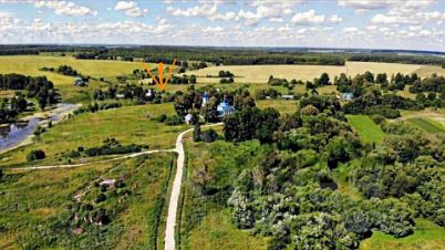 Продаётся земельный участок площадью 15 соток ( прямоугольной формы 58м х 26м ). Координаты - 54.553152, 37.379175. Деревня расположена в историческом, тихом и живописном месте. С участка открывается вид на восстановленную церковь и большой пруд. Рядом с церковью организована купель. На участке есть большая яблоня. Несколько лет назад, был залит ленточный фундамент размером 6 х 7 м., но строительство дома так и не начали. Земля ченозем, очень плодородная. Техническая возможность подключения участка к Россетям имеется. Дополнительно, есть вариант подключения к водяной скважине на соседнем участке (8), на договорных условиях соседями. Соседи Хорошие, порядочные люди. Место расположения участка на фото показано красной стрелкой. Р.S/ В деревню к церкви провели газ. Есть надежды, что деревню газифицируют.
