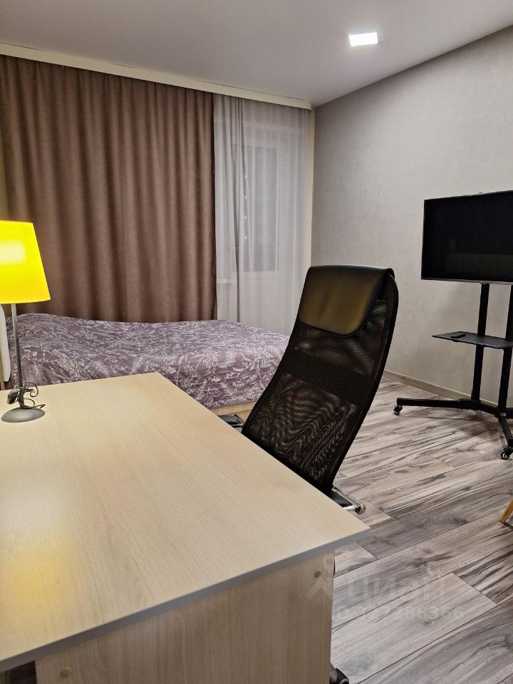 Сдается однокомнатная квартира. В комнате есть рабочая зона с компьютерным столом и книжными полками, и зона отдыха с телевизором и журнальным столиком. Дом кирпично-монолитный, теплый, расположен в отдалении от проезжей части. Окна выходят на пос. Октябрьский. Близко Комсомольский парк, продуктовый магазин, остановка общественного транспорта.