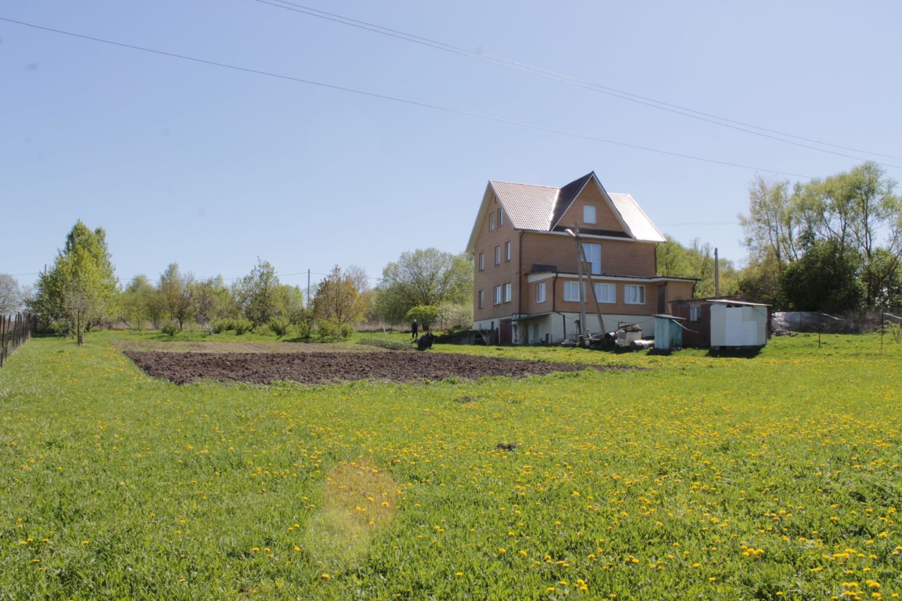 Уютный кирпичный дом на холме, позади деревни, в тупике. Изначально было куплено 2-а участка, 12.31 и 15 соток. На 15-ти сотках выстроили большой дом. На участках высадили деревья, кусты, разбили небольшой огород. Чуть за домом, по дороге, располагались соседи, которые решили продавать ветхий дом и землю. Выкупили у них. Цель была, что бы мимо нашего дома уже никто не ездил. Собственно - ''Мы одни, на холме. Раздолье!'' Дом 3 этажа + подвал с гаражом, есть 2-е террасы. Террасы холодные, но капитальные. Размером 4х10 и 3х5 метров. На третьем этаже огромная комната свободной планировки 10х11. Планировали сделать игровую зону с бильярдом, с теннисным столом, но увы. Возраст, здоровье... Два этажа с хорошим ремонтом, можно заезжать и жить. Большущая кухня, 4,5х6 м, гостиная, 6х6 м и много спален - 3х4 первый этаж, 4х6 и 3х4 - 3 шт. второй этаж. Сан узлы на каждом этаже. Септик переливной. Погреб разделён на две части размерами 6х11 и 3х11 метров. Сухой, вентилируемый. Имеется тёплый гараж. Такое дивное место расположено на границе Тульской и Московской областей, в достаточной удаленности от больших городов, что дает возможность насладиться чистым воздухом, природой, грибы, ягоды, лесные жители прилагаются бонусом. А местное фермерское хозяйство обеспечит вас натуральным свежайшими продуктами.