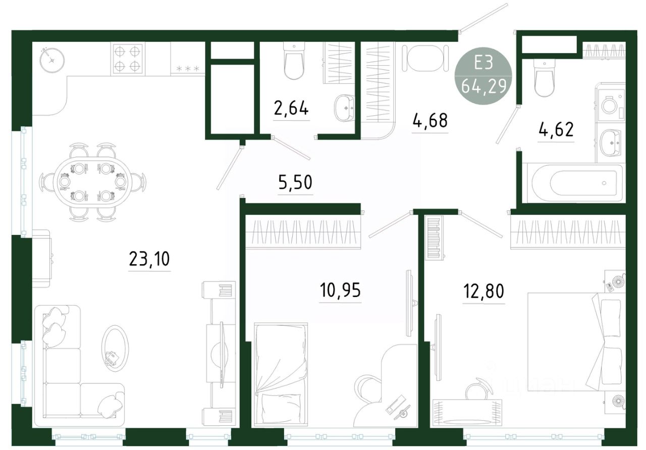 Общая площадь64,29 м2