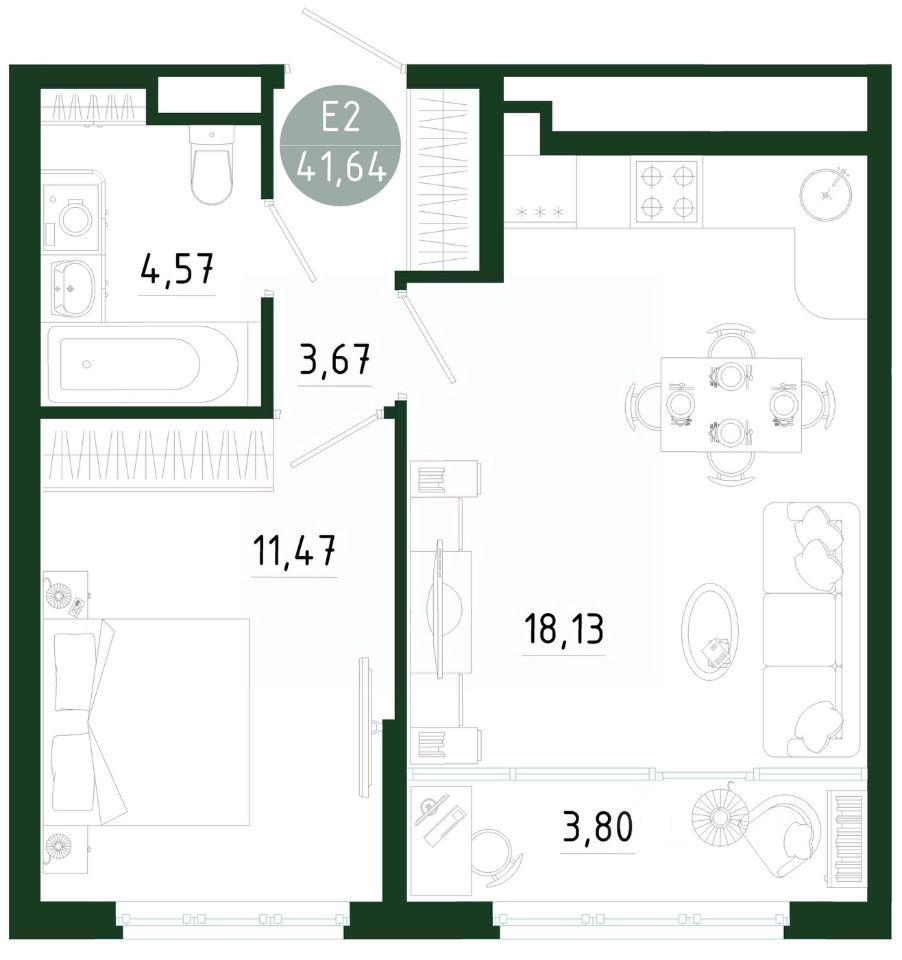 Общая площадь41,64 м2