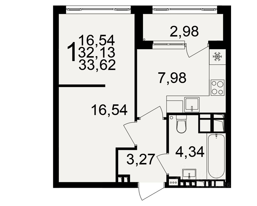 Общая площадь33,62 м2