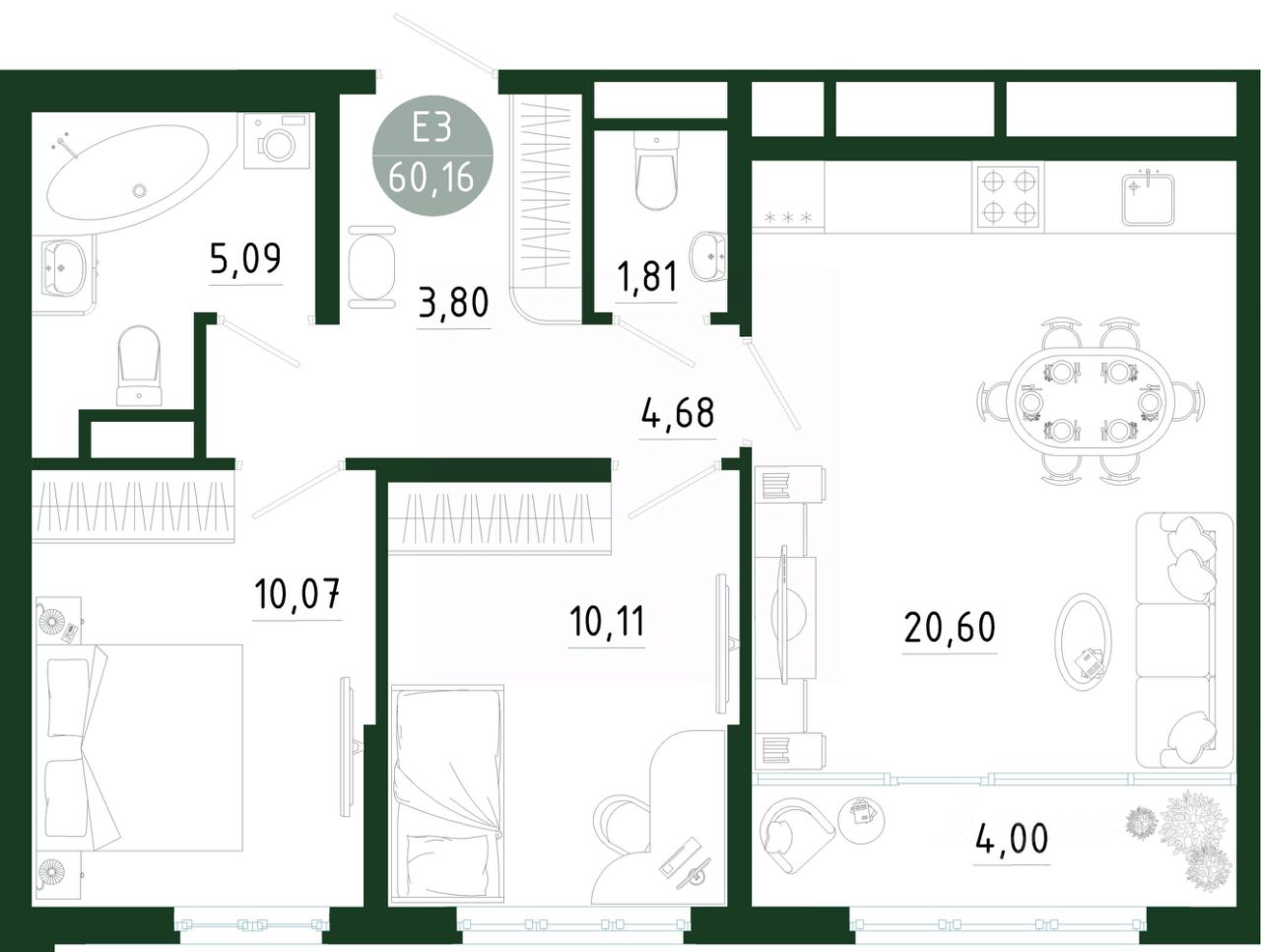 Общая площадь60,16 м2