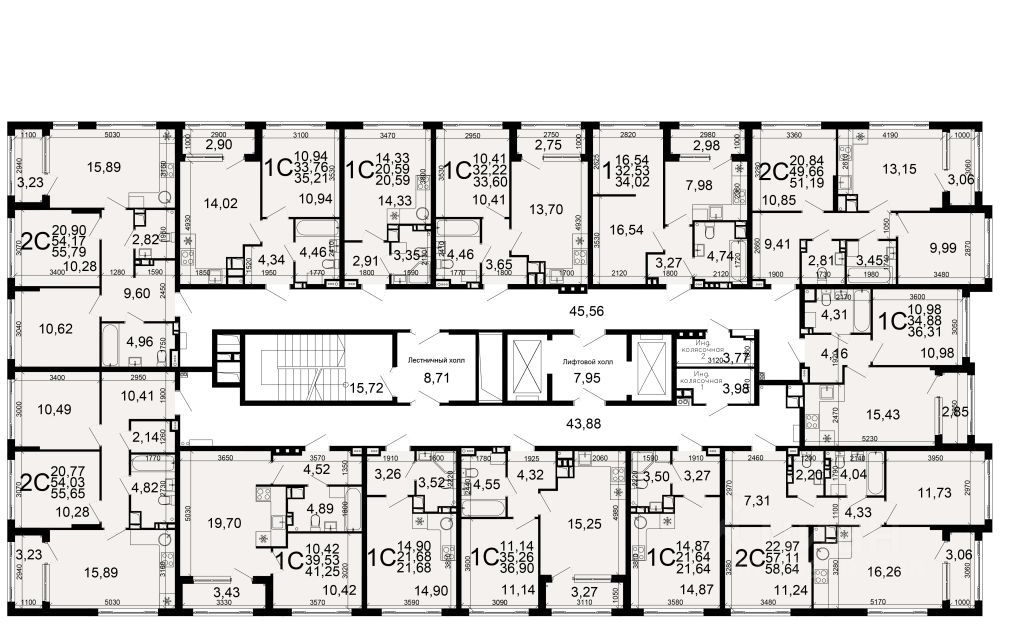 Общая площадь55,65 м2
