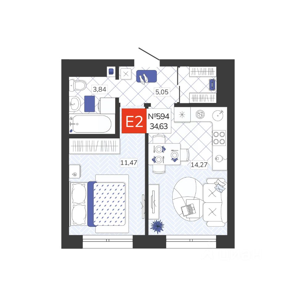Общая площадь34,63 м2