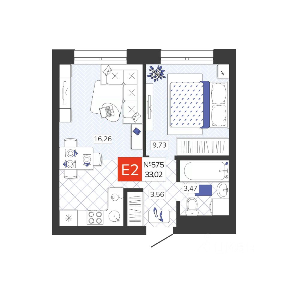 Общая площадь33,02 м2