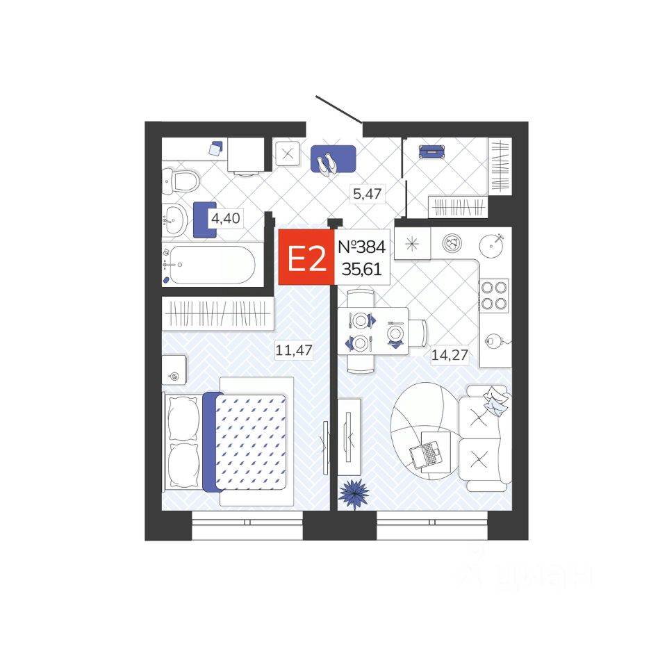 Общая площадь35,61 м2