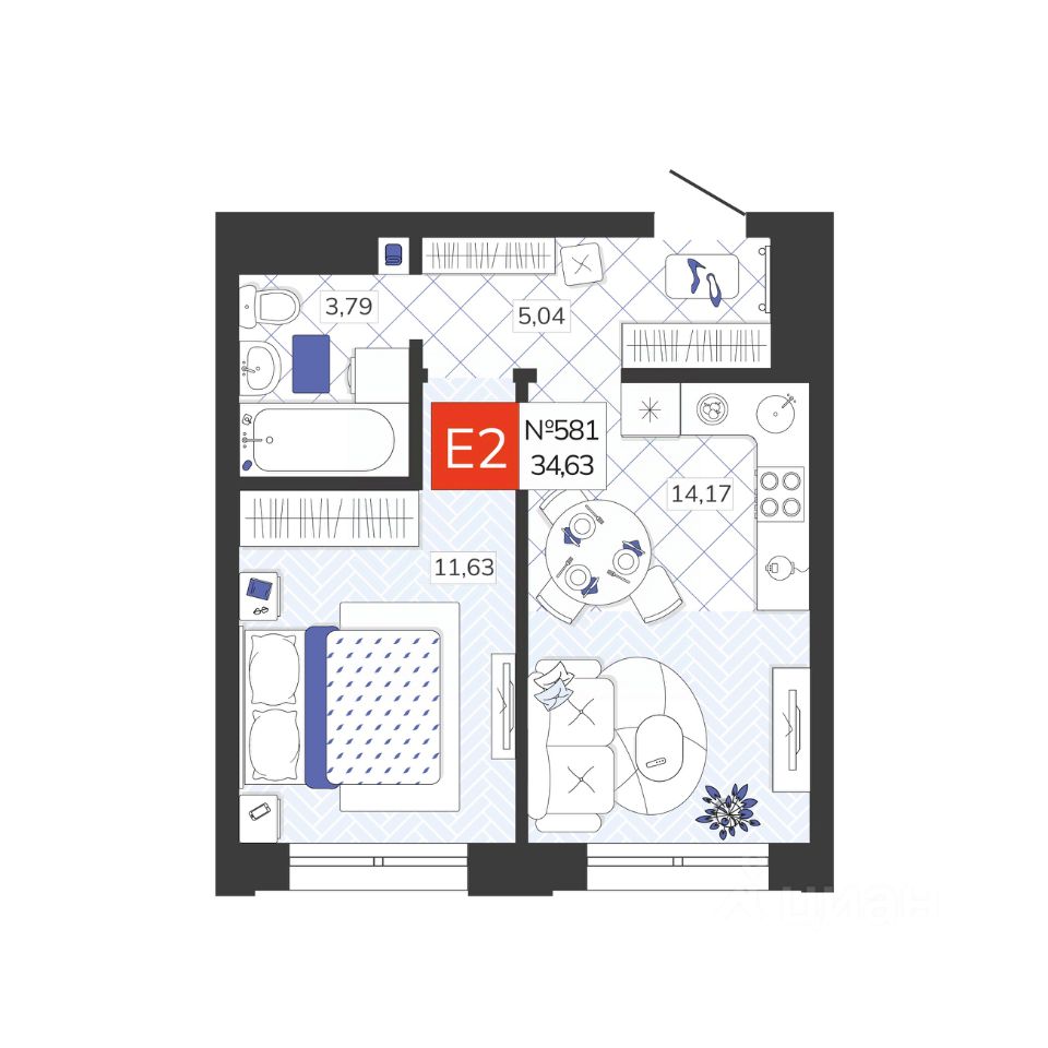 Общая площадь34,63 м2