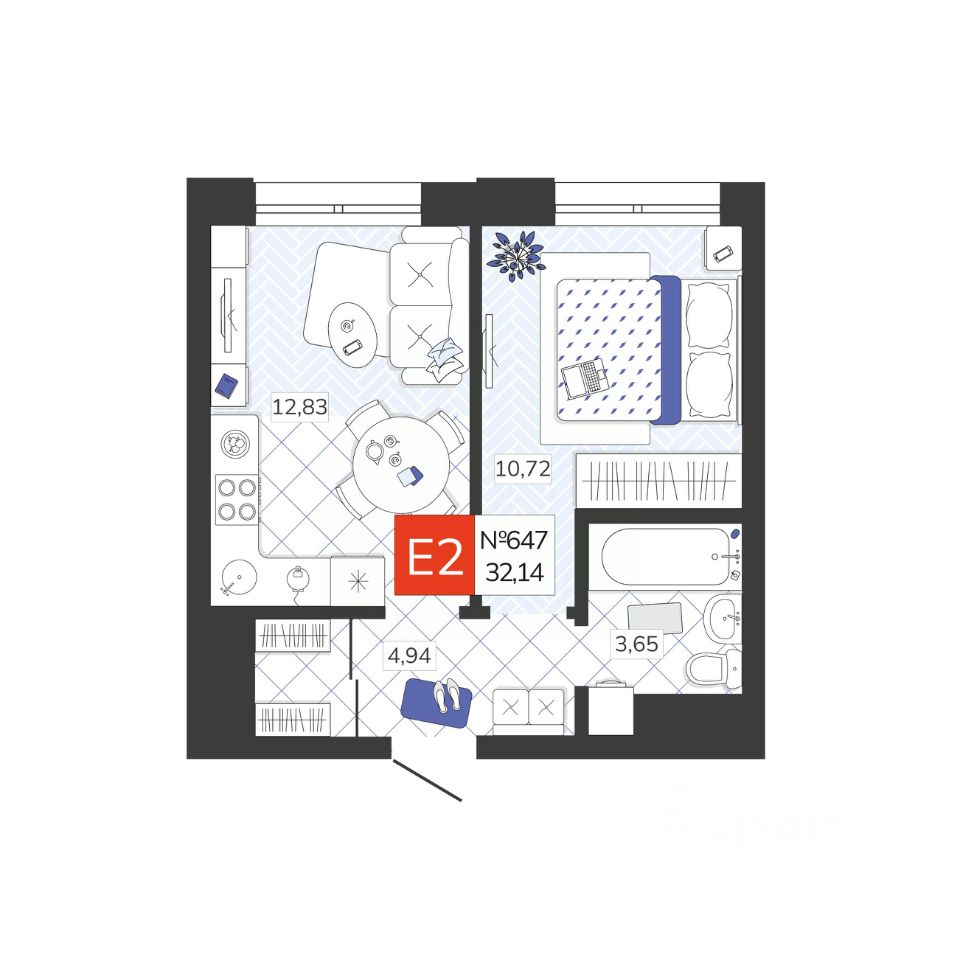Общая площадь32,14 м2