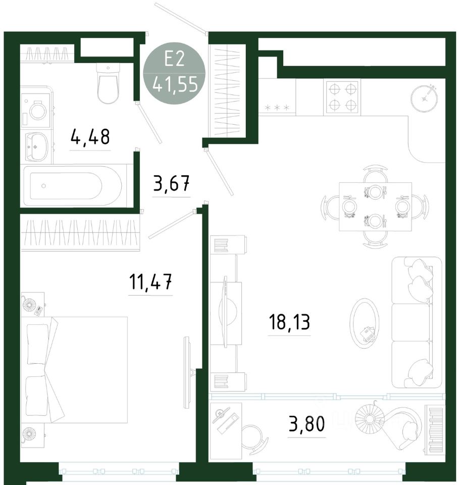 Общая площадь41,55 м2