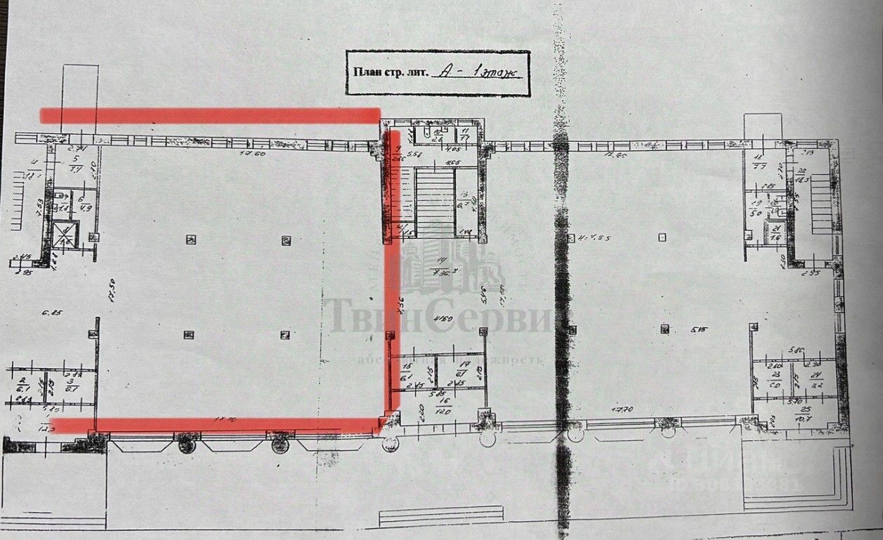 Есть лифт грузовой. Высокие потолки. Мокрые точки.