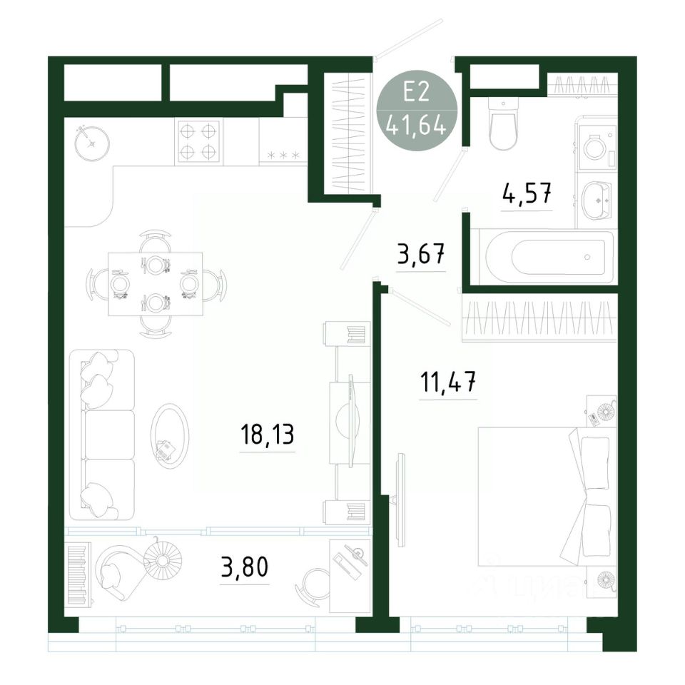 Общая площадь41,64 м2