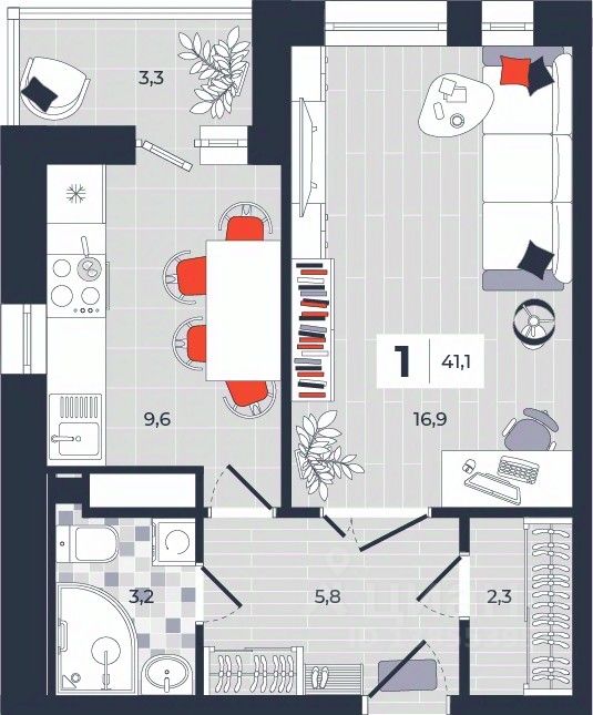 Продаётся 1-комнатная квартира в строящемся доме (Дом 30), срок сдачи: IV-кв. 2026, общей площадью 41.1 кв.м., на 4 этаже. Расположение, транспортная доступность Новый жилой комплекс ''Юго-Восточный'' строится в Туле, в 3,5 км от центра города. Благодаря удачным транспортным развязкам, автолюбители смогут доехать до центральных кварталов примерно за 5 10 минут, составив наиболее быстрый и удобный маршрут с учетом загруженности дорог. Проблем с мобильностью не возникнет и у пассажиров общественного транспорта. Рядом с домом расположены остановки автобусов и маршрутных такси, которые быстро довезут до любого района города. Так, чтобы добраться до центра, следует дойти пешком до остановки ''Медтехника'', где останавливается маршрутное такси, доезжающее до центральных кварталов всего за 7 8 минут. Инфраструктура Район, где возводится новый жилой комплекс, активно застраивается, и сеть инфраструктуры сов временем будет расширяться. Но и сейчас все, что нужно для комфортной жизни в городе, находится недалеко от жилого комплекса. В шаговой доступности расположены продуктовые магазины: ''Виктория'', ''Овощи-фрукты'', Магазин рыбы и мяса птицы, магазин мяса и колбас ''У Максима'', супермаркеты ''Дикси'', ''Пятерочка'', ''SPAR''. Неподалеку находится гипермаркет ''Линия'', крупный торговый центр, в котором расположены отделения банков, гипермаркет ''Глобус'', салон оптики, мебельный магазин ''Столплит'', зоомагазин ''Четыре лапы'' и пр. В соседнем здании находится строительный гипермаркет ''Леруа Мерлен'', за ним крупный магазин товаров для спорта, туризма и активного отдыха ''Декатлон''.Недалеко от жилого комплекса открыты кафе и рестораны: кофейня ''Bonape'', пиццерия ''Культура'', кафе ''Вкуснов'', кафе быстрого обслуживания ''Rapido'', ресторан ''У фонтана'' и пр.В районе есть аптеки, поликлиники, диагностические центры. В шаговой доступности от жилого комплекса расположено несколько детских садиков, в том числе, садик комбинированного вида ''Алые паруса''. Есть дошкольные отделения, входящие в состав образовательных центров, Центры развития ребенка. Поблизости расположены средние школы, в том числе, школа для детей с ОВЗ. Рядом с жилым комплексом находится Тульская Духовная Семинария и Суворовское училище. Надежность застройщик: достраивает объект ООО Ин-Групп.АрхитектураЖилой комплекс будет представлен 19 монолитно-кирпичными корпусами переменной этажности, выполненными в едином архитектурном стиле. При строительстве ЖК ''Юго-Восточный'' применяются современные материалы высокого качества, которые обеспечивают надежность домов и комфортный микроклимат в помещениях. Каждая секция оснащается современными лифтами. Помещения общего пользования отделываются экологичными материалами. Квартиры предлагаются однокомнатные (от 43,9 кв. м), двухкомнатные (от 45,8 кв. м), трехкомнатные (от 60,4 кв. м) и четырехкомнатные (от 87,2 кв. м), а также уютные студии (от 28,9 кв. м).На внутренней территории проводится комплексное благоустройство: озеленение, организация игровых площадок, мест для отдыха и зан