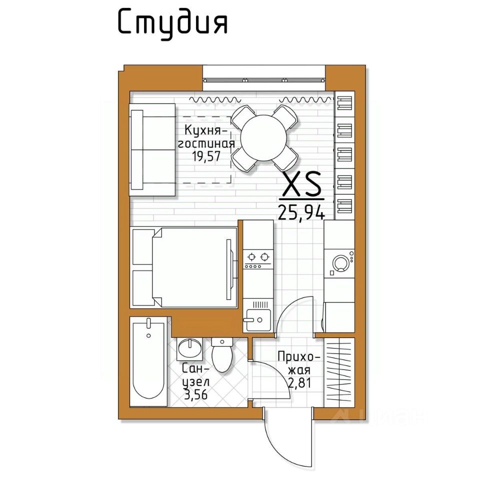 Общая площадь25,94 м2