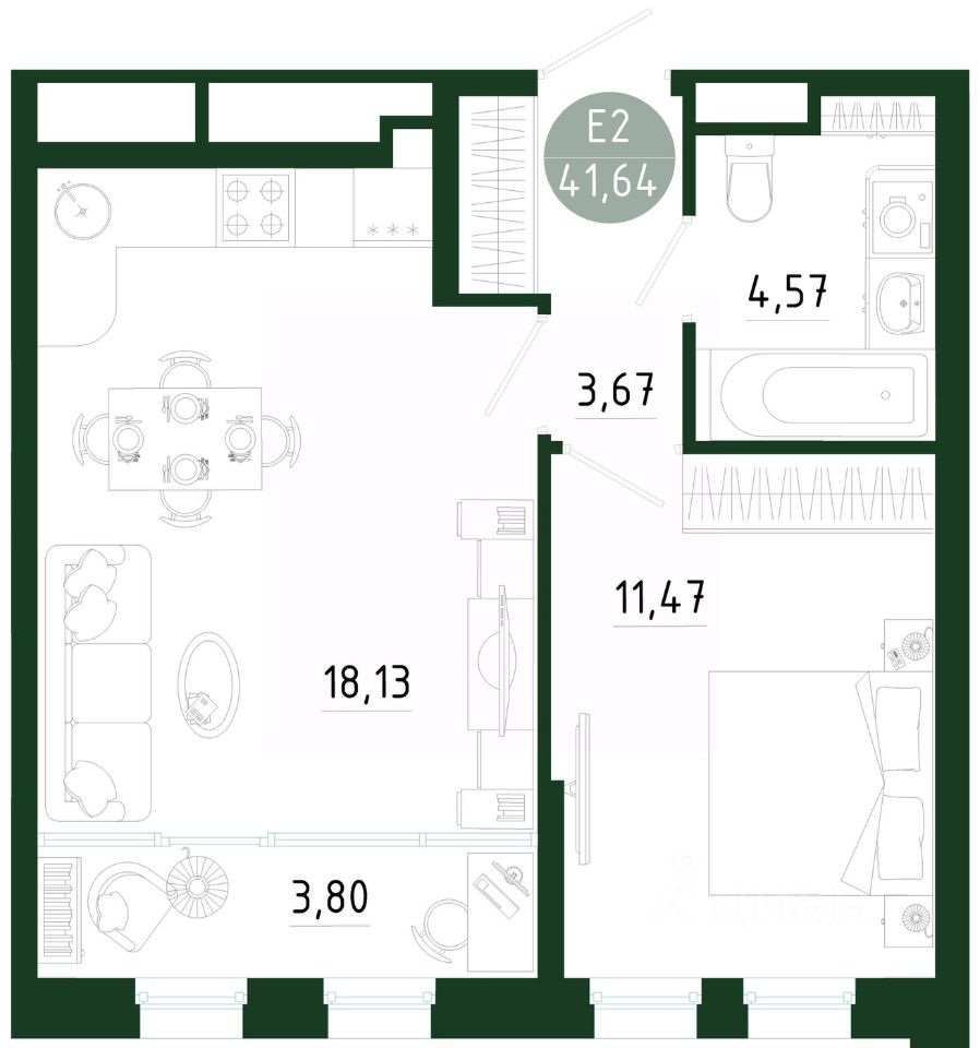 Общая площадь41,64 м2