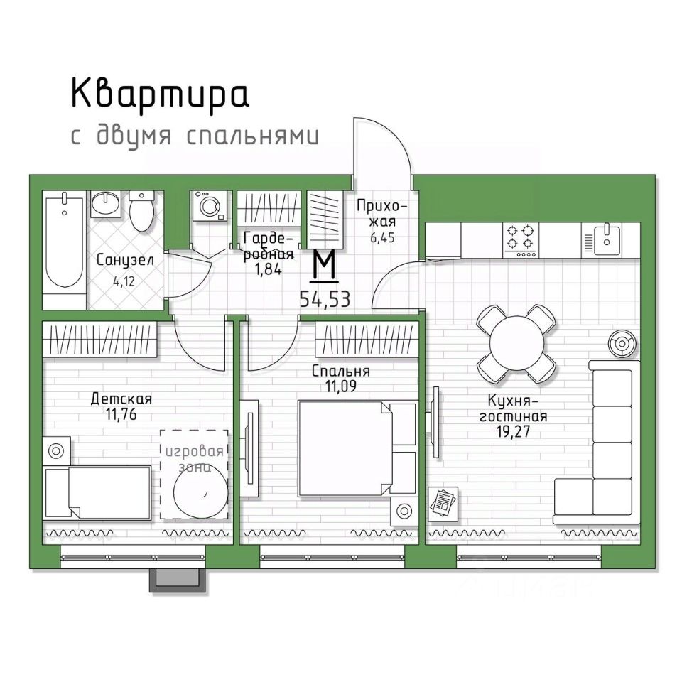 Общая площадь54,53 м2